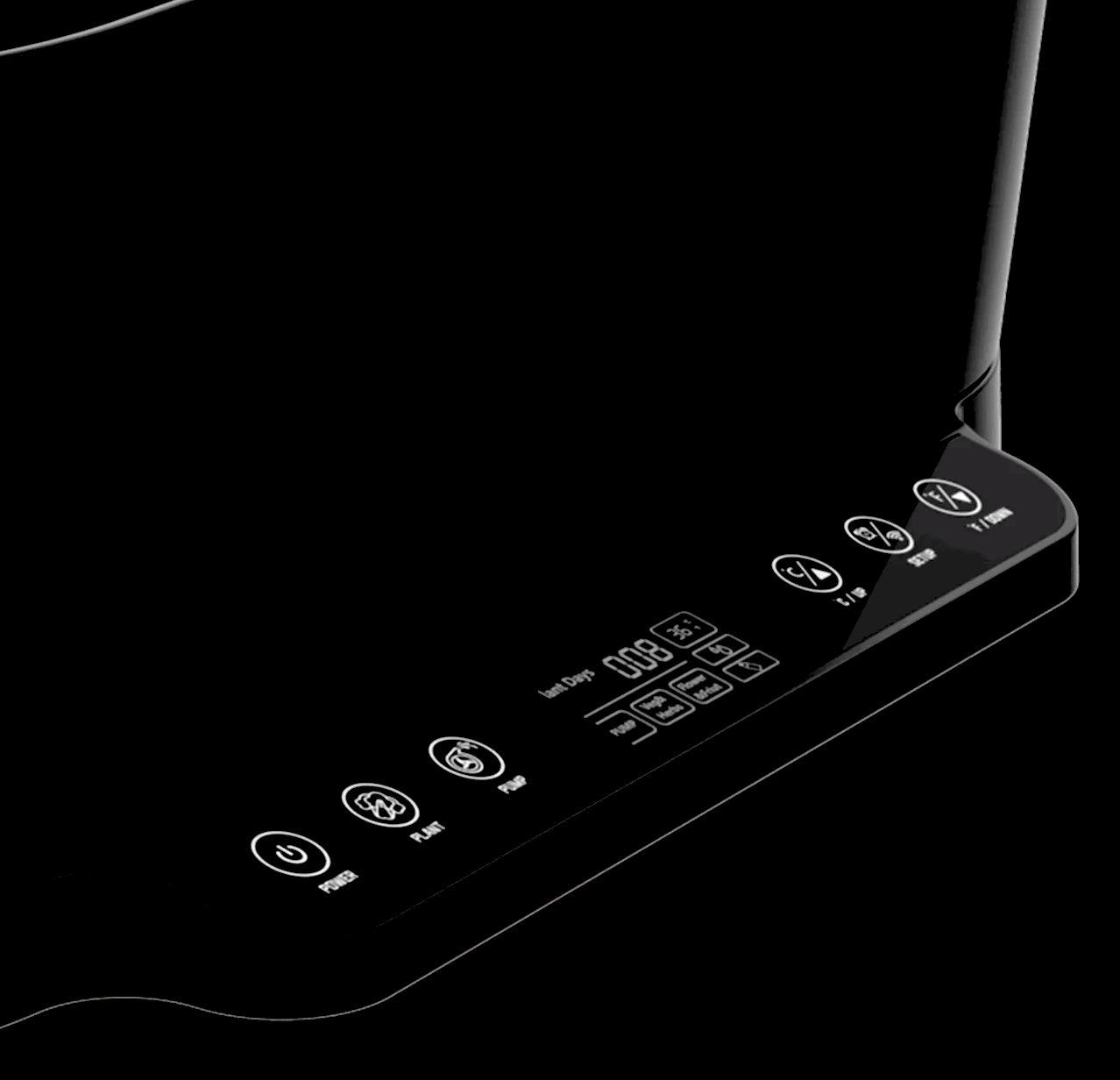 - An LCD control panel offers local control and helpful insights including water level, nutrient status, and temperature